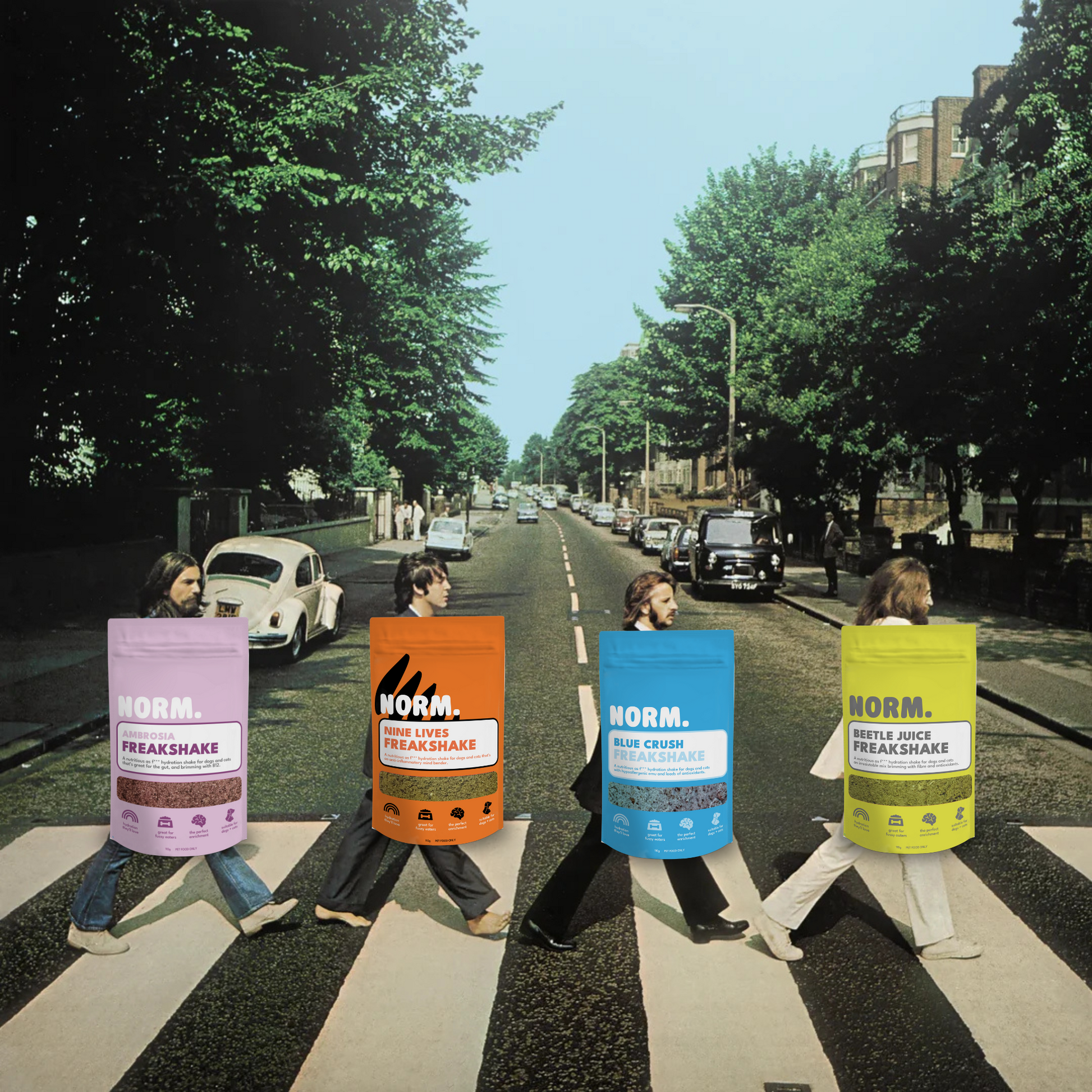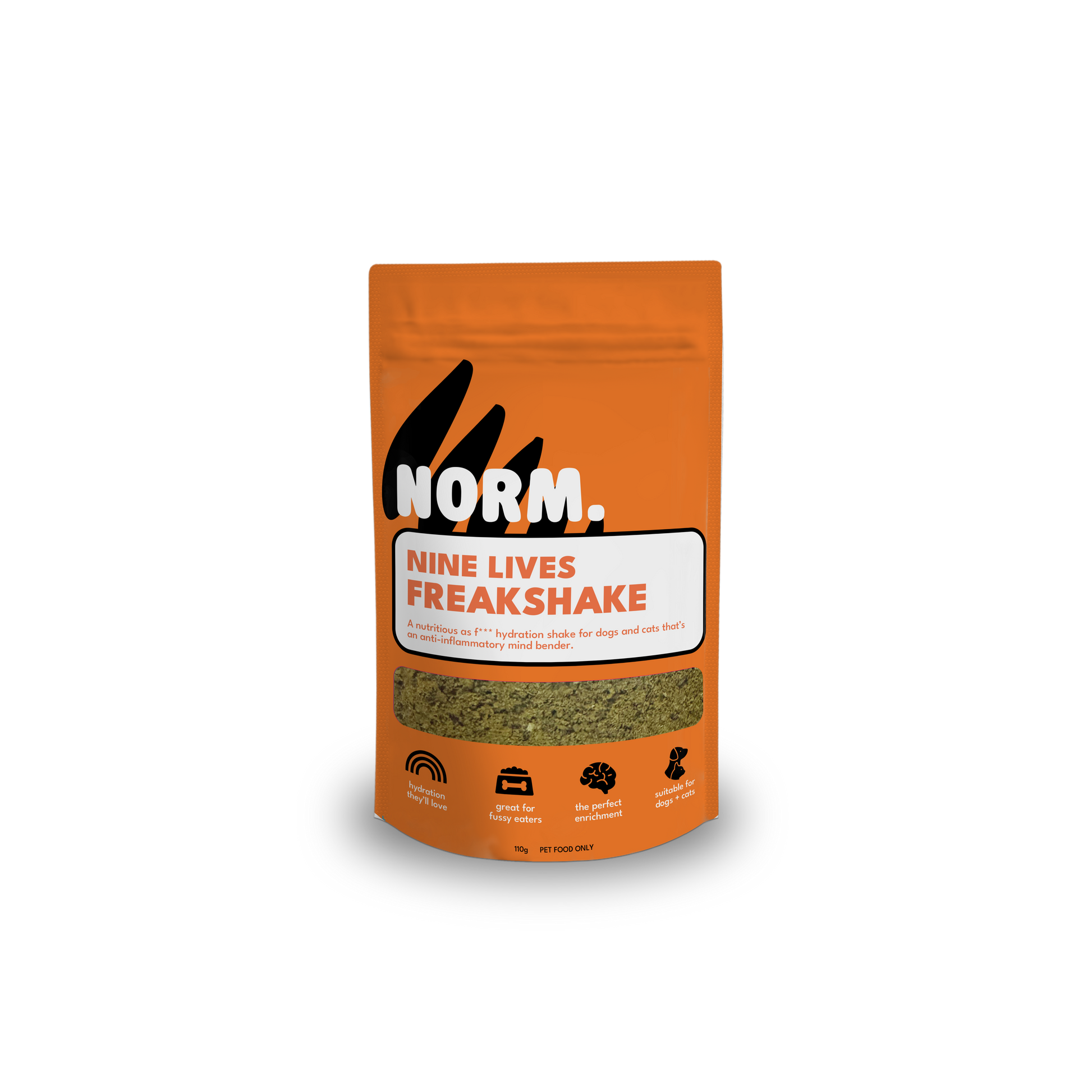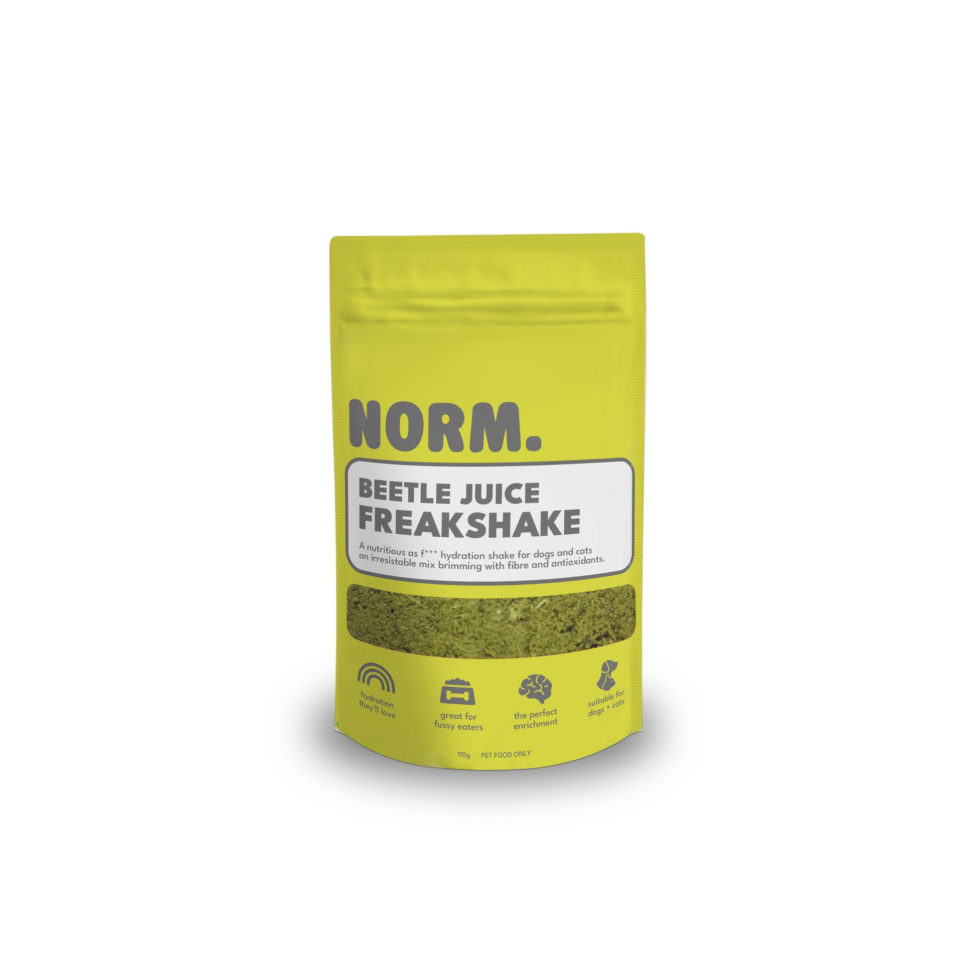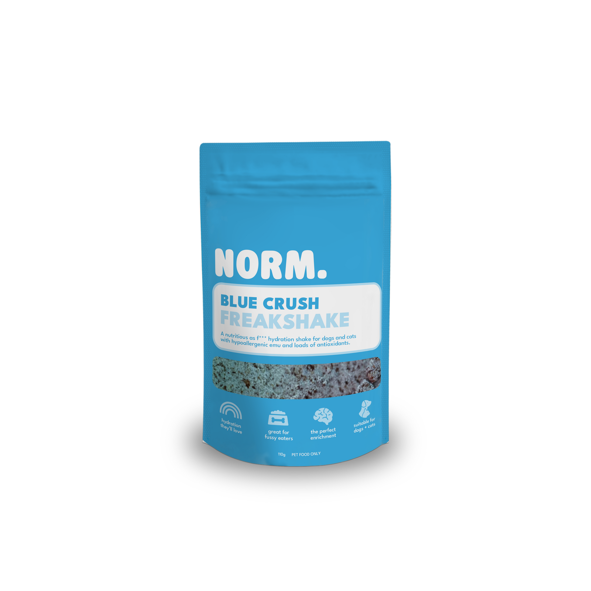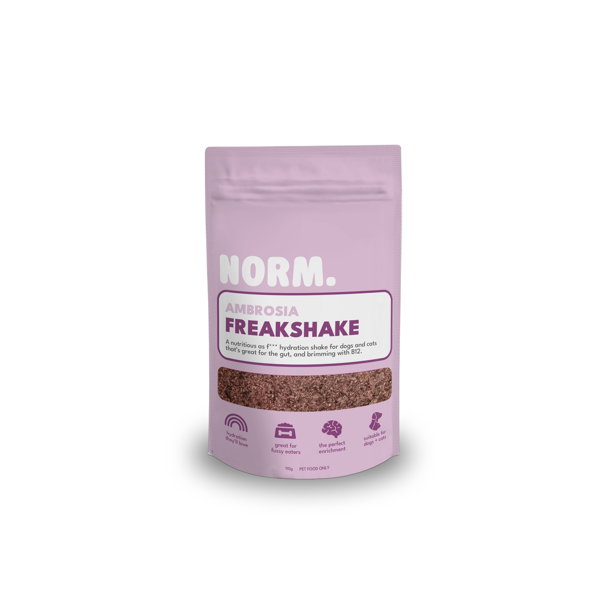 Adding a freakshake to your dog or cat's meals is a great way to entice fussy Normies to eat their dinner. It also increases their water consumption, which is especially helpful for Normies who eat a dry diet (like kibble or freeze dried food), as well as older Normies, or elite athlete Normies. Norm can also be used as a meal topper or a natural food colouring that you can add to things like natural yogurt or homemade dog biccies.