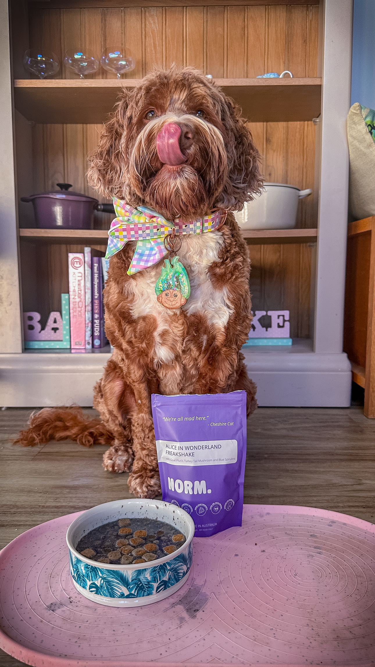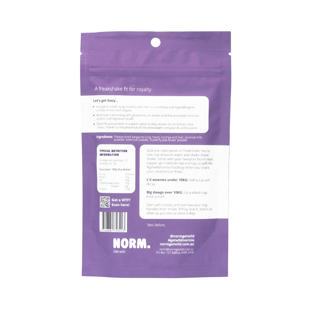 Adding a freakshake to your dog or cat's meals is a great way to entice fussy Normies to eat their dinner. It also increases their water consumption, which is especially helpful for Normies who eat a dry diet (like kibble or freeze dried food), as well as older Normies, or elite athlete Normies. Norm can also be used as a meal topper or a natural food colouring that you can add to things like natural yogurt or homemade dog biccies.