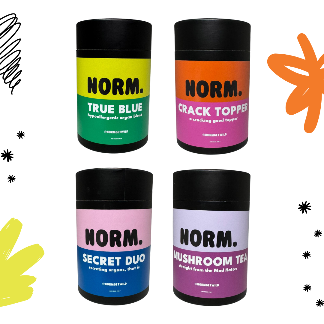 Adding a freakshake to your dog or cat's meals is a great way to entice fussy Normies to eat their dinner. It also increases their water consumption, which is especially helpful for Normies who eat a dry diet (like kibble or freeze dried food), as well as older Normies, or elite athlete Normies. Norm can also be used as a meal topper or a natural food colouring that you can add to things like natural yogurt or homemade dog biccies.